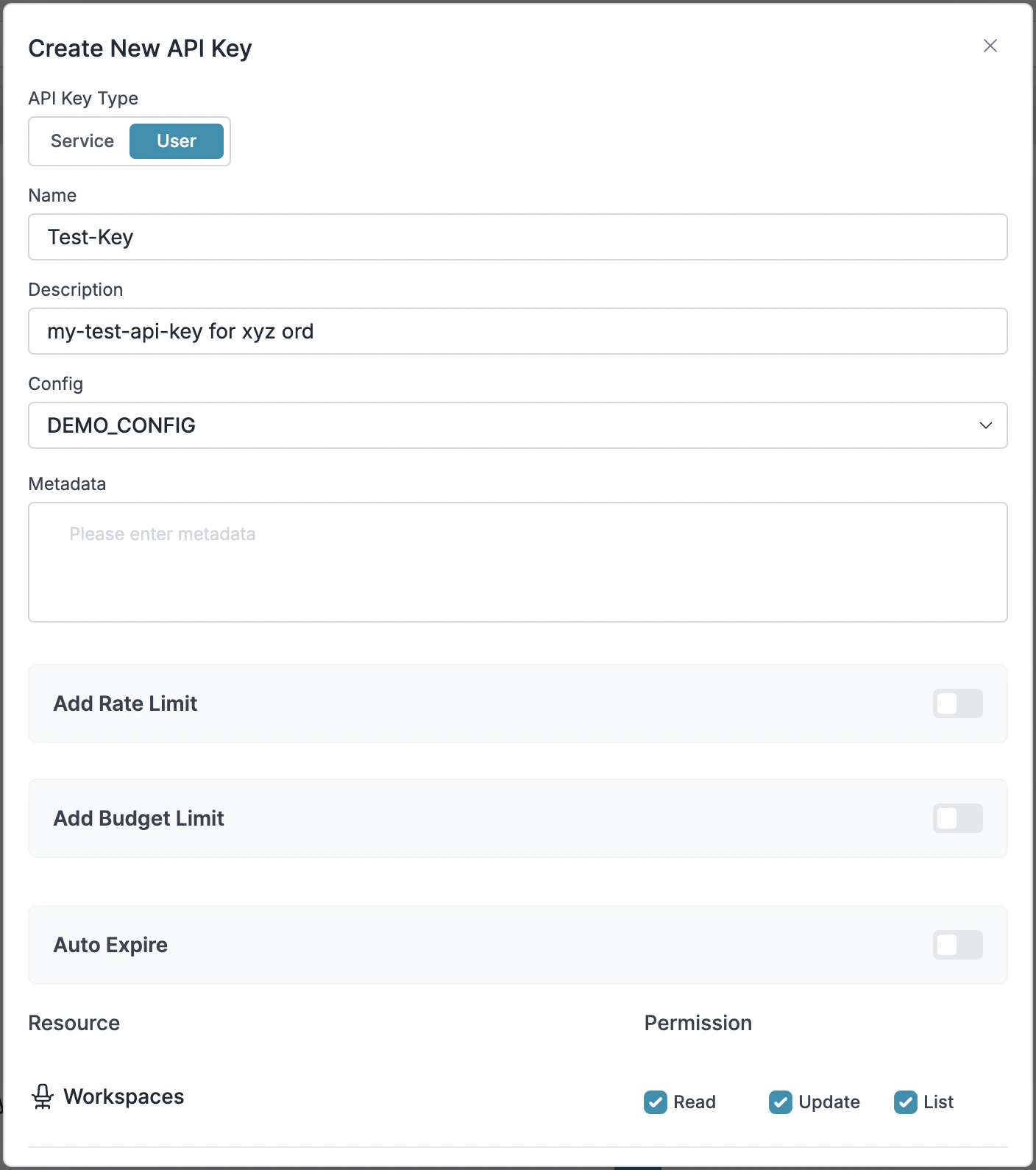 - Go to API Keys in Portkey and Create new API key