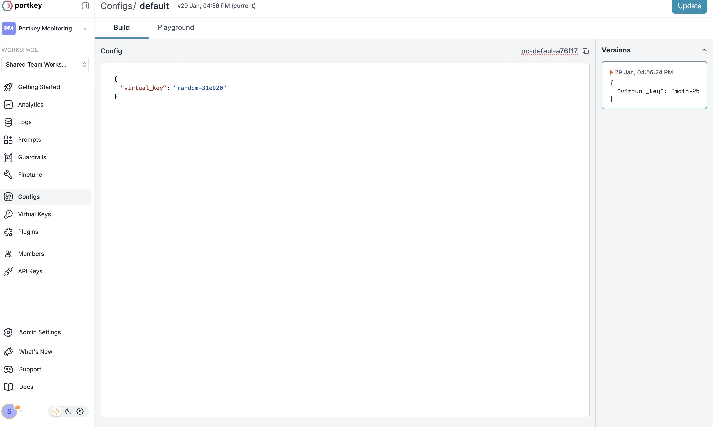 - Go to Configs in Portkey dashboard